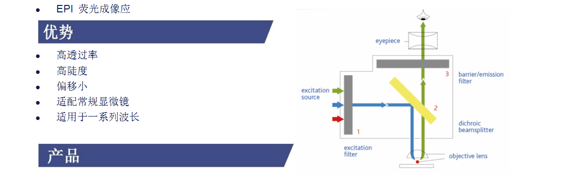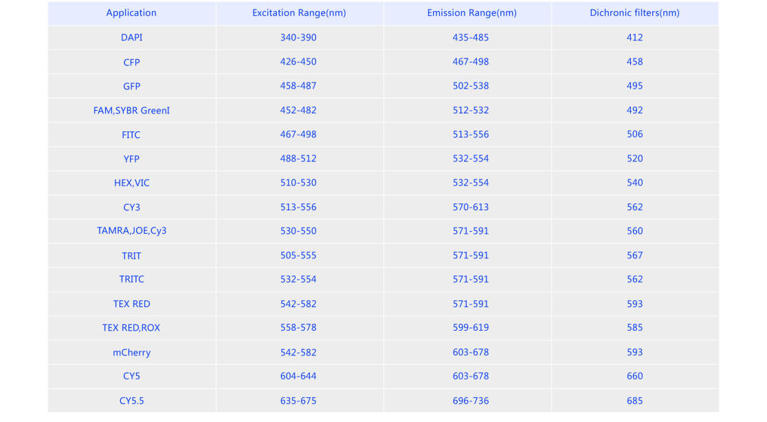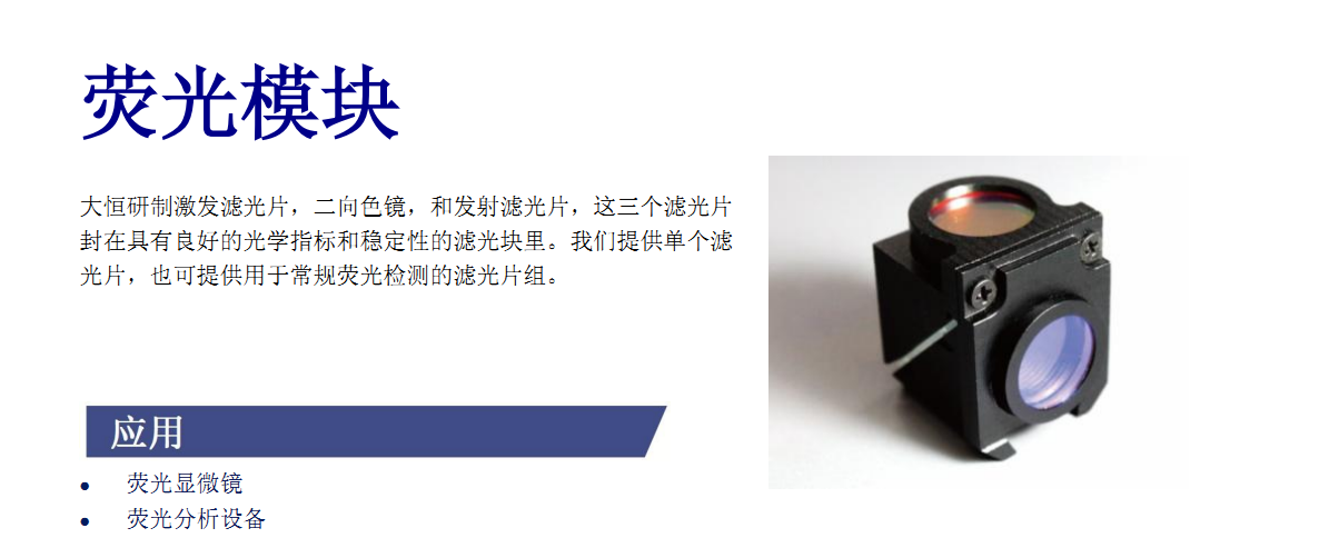 大恒研制激发滤光片,二向色镜,和发射滤光片,这三个滤光片封在具有良好的光学指标和稳定性的滤光块里。