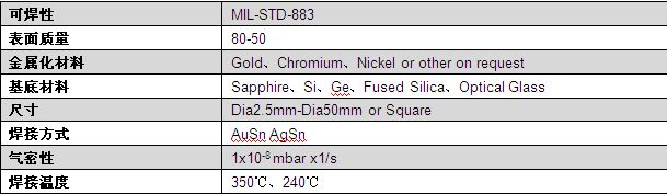 大恒光学薄膜中心提供金属化光窗,用于焊接或连接到光学机械装配上从而实现密封性能,金属化材料可根据客户要求进行选择。